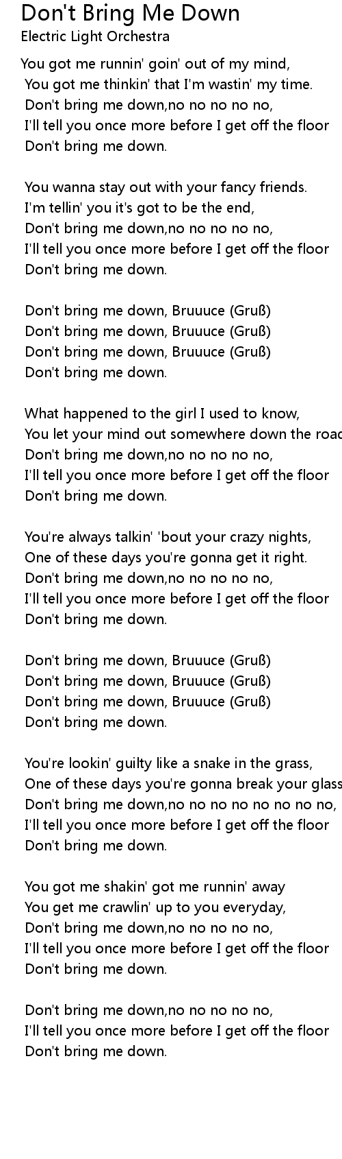 | Don' t bring me down. | |