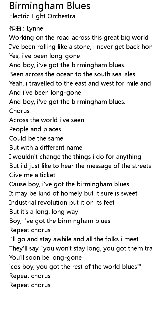 | Cause boy, i' ve got the birmingham blues. | |
