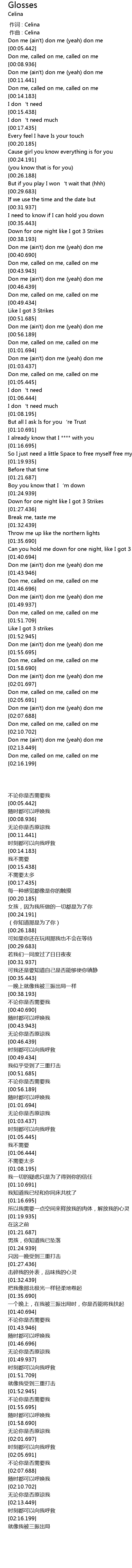 | [00:00.000] | 作词 : Celina |