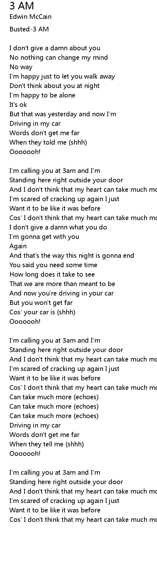 I'm calling you at 3am and I'm |