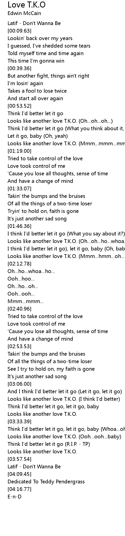 Looks like another love T.K.O. (Mmm...hmm...oh...ho...oh...) |