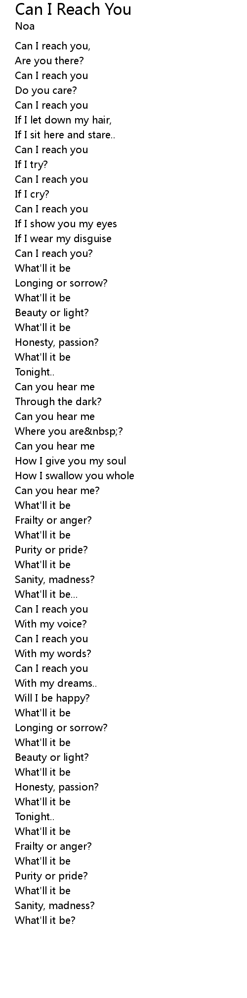 | Can I reach you, | |