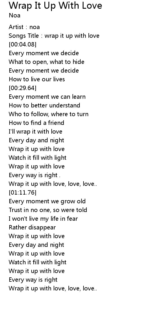 | [01:50.54] | Wrap it up with love |