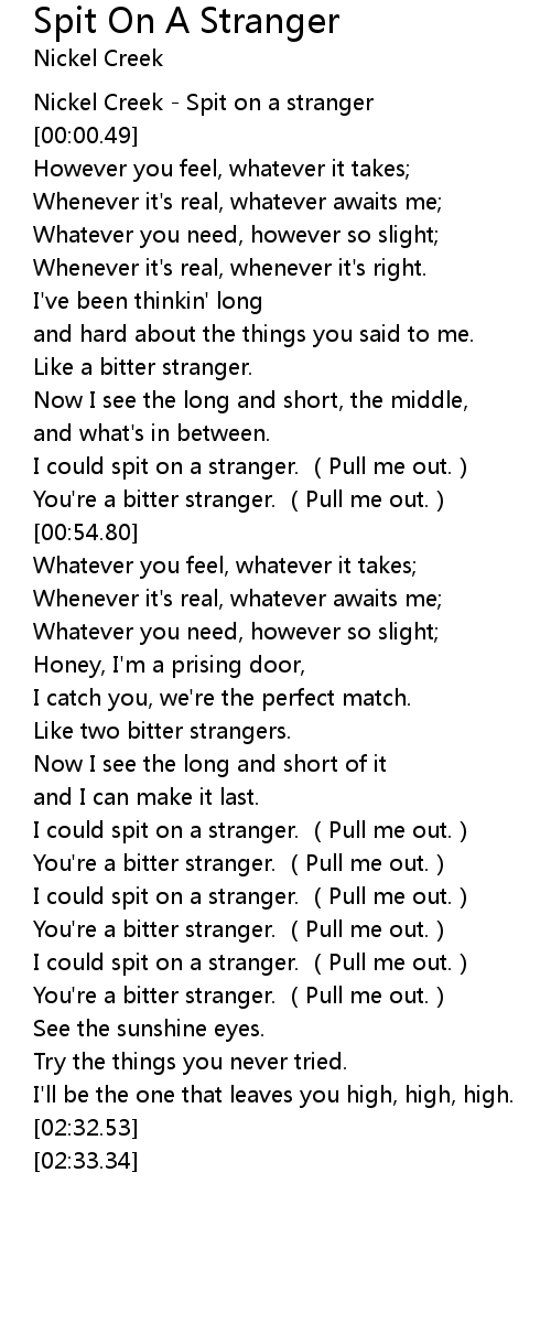| [00:00.00] | Nickel Creek Spit on a stranger |