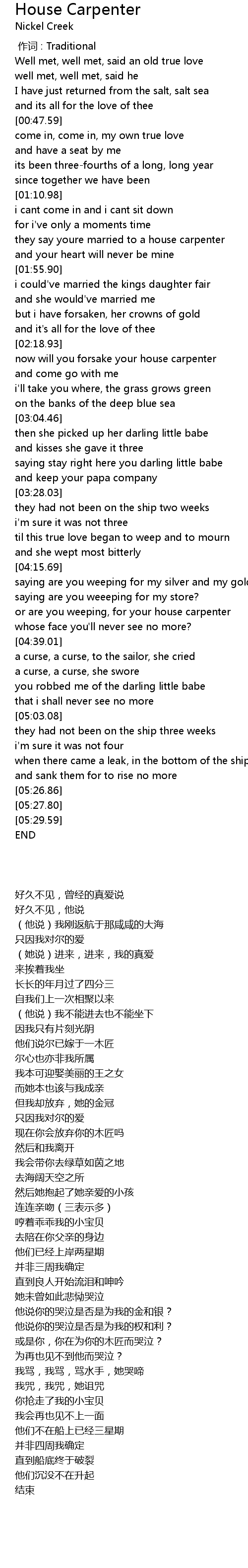| [04:29.42] | or are you weeping, for your house carpenter |