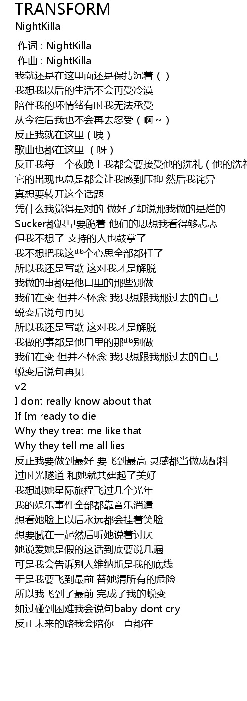 | [01:03.438] | 我们在变 但并不怀念 我只想跟我那过去的自己 蜕变后说句再见 |