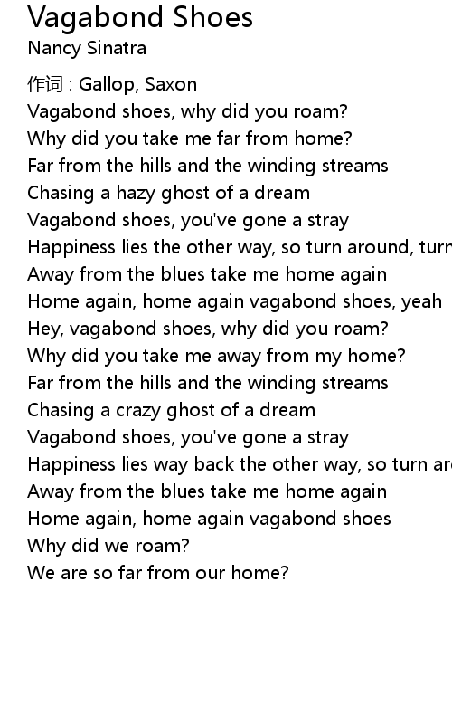 | Vagabond shoes, why did you roam? | |