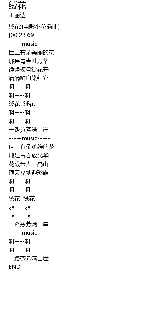 | [00:00.50] | 绒花:(电影小花插曲) |