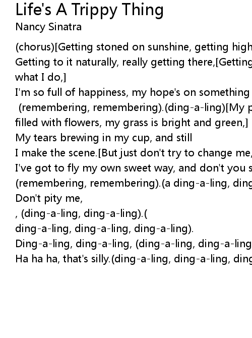(chorus)[Getting stoned on sunshine, getting high on air,] |