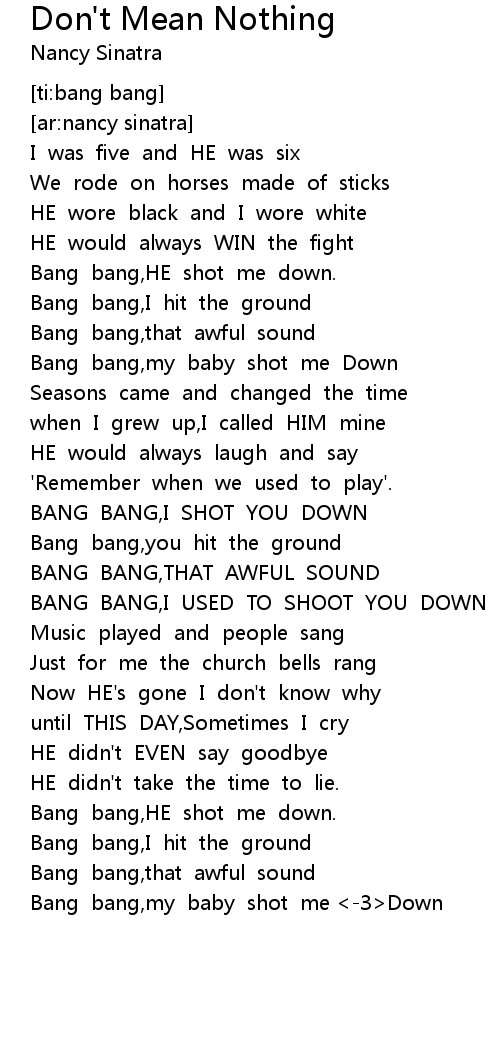 BANG BANG,I USED TO SHOOT YOU DOWN |