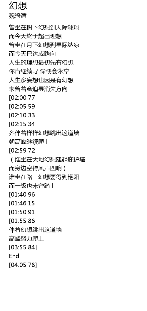 | [03:43.65] | 伴着幻想跳出这道墙 |