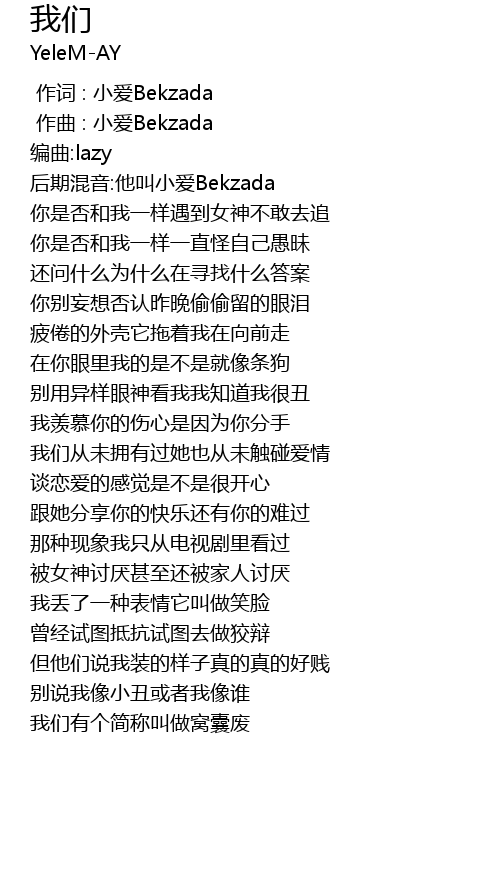 | [00:01.960] | 编曲:lazy |