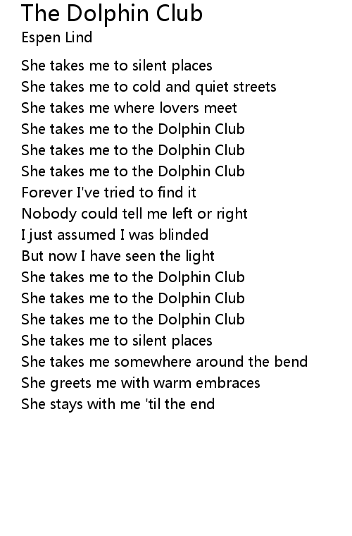 She takes me to the Dolphin Club |