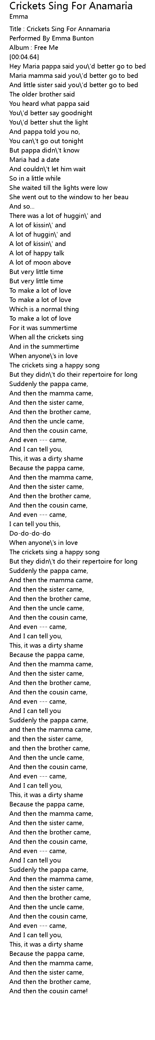| [00:01.40] | Title : Crickets Sing For Annamaria |