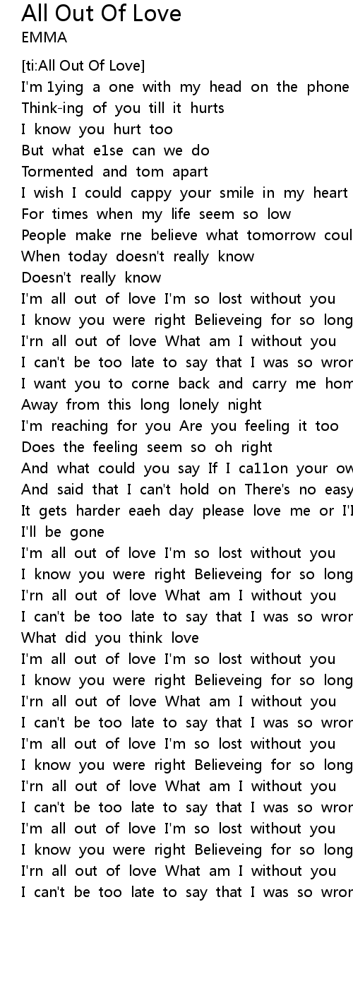 | [03:31.560] | I'm all out of love I'm so lost without you |