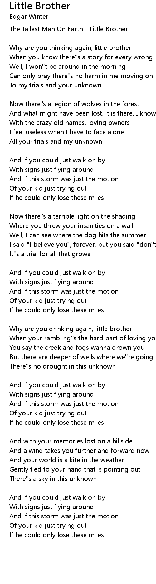 The Tallest Man On Earth - Little Brother |