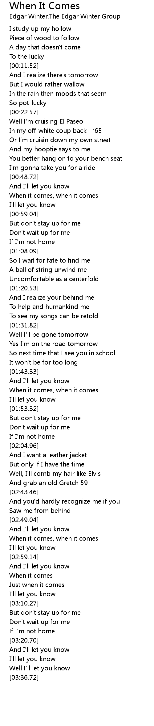 | [01:35.81] | Yes I' m on the road tomorrow |