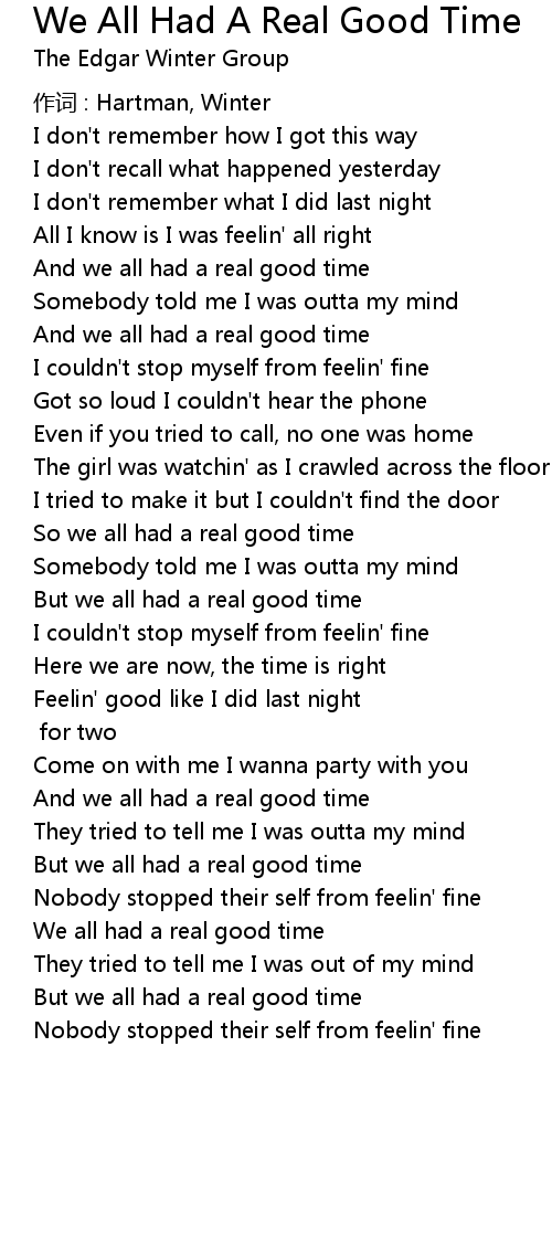 | Song | We All Had A Real Good Time |