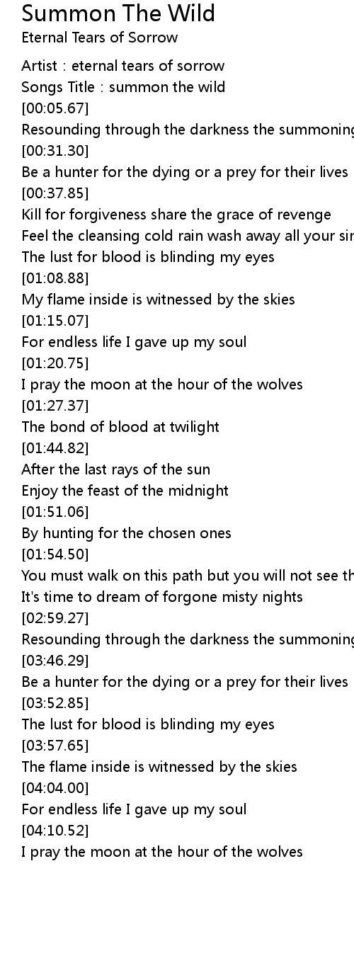 | [03:42.49] | Resounding through the darkness the summoning of the wild |