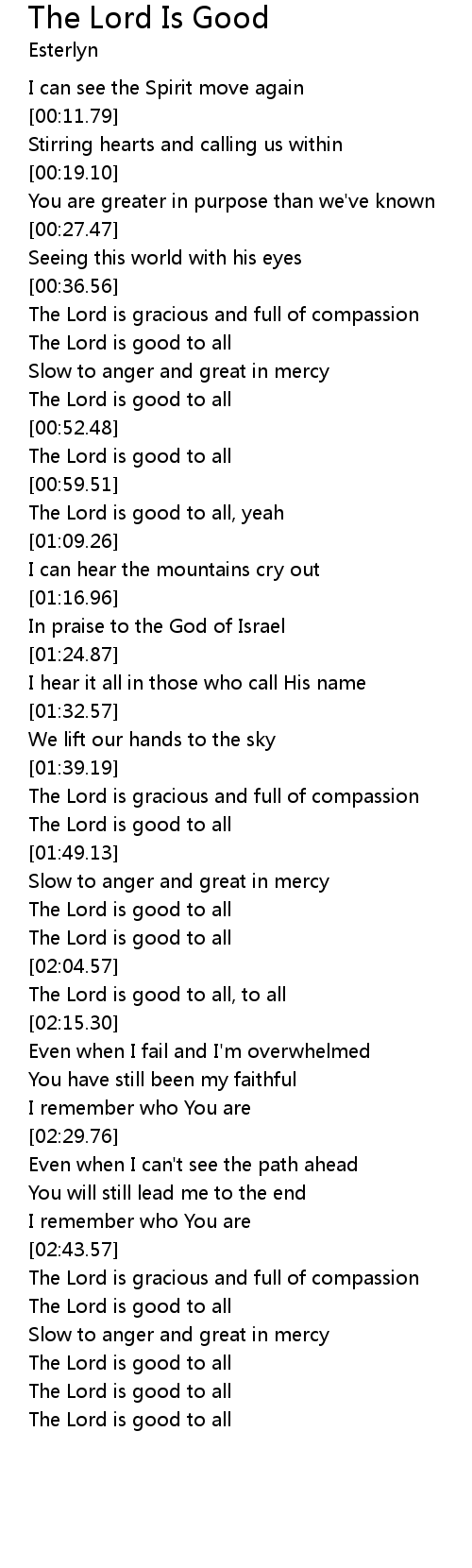| [02:48.76] | The Lord is gracious and full of compassion |