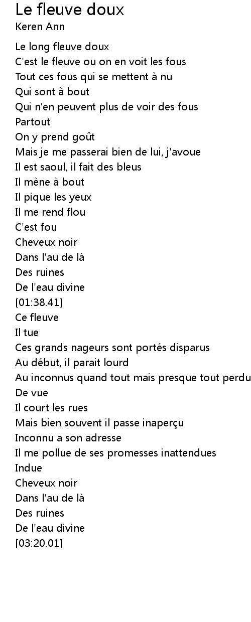 | [00:30.58] | C' est le fleuve ou on en voit les fous |
