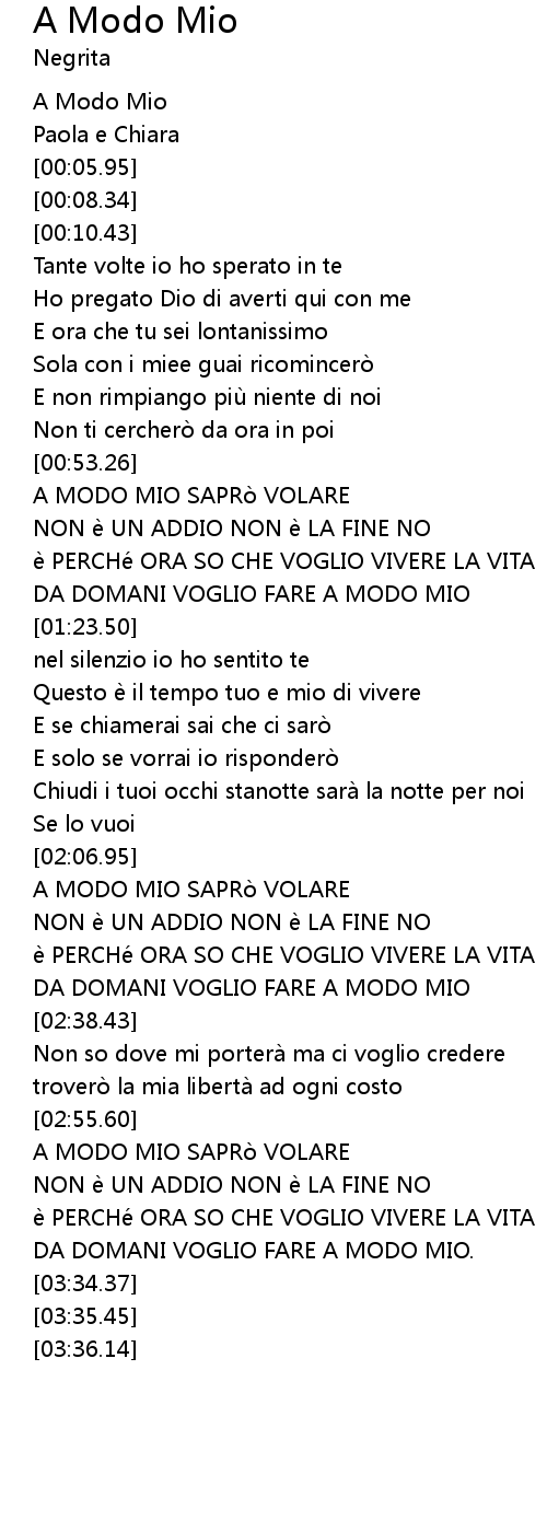 | [02:59.64] | A MODO MIO SAPRo VOLARE |