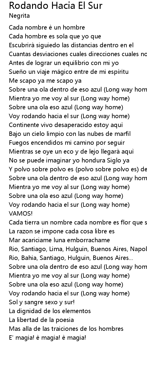 | Mientra yo me voy al sur Long way home | |