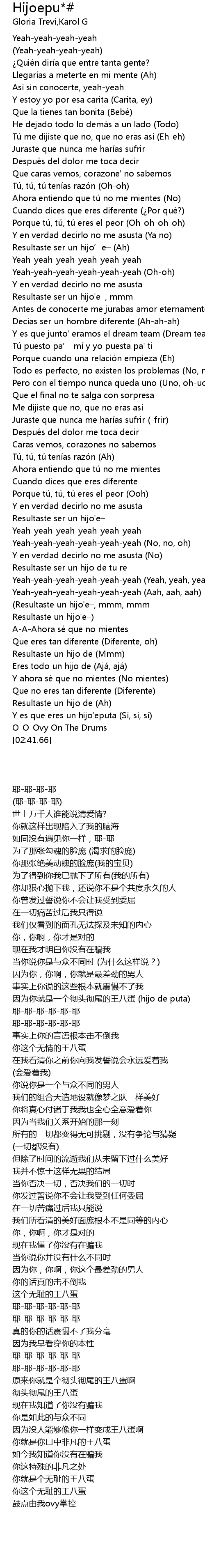 | [00:46.64] | Porque tu, tu, tu eres el peor Ohohohoh |