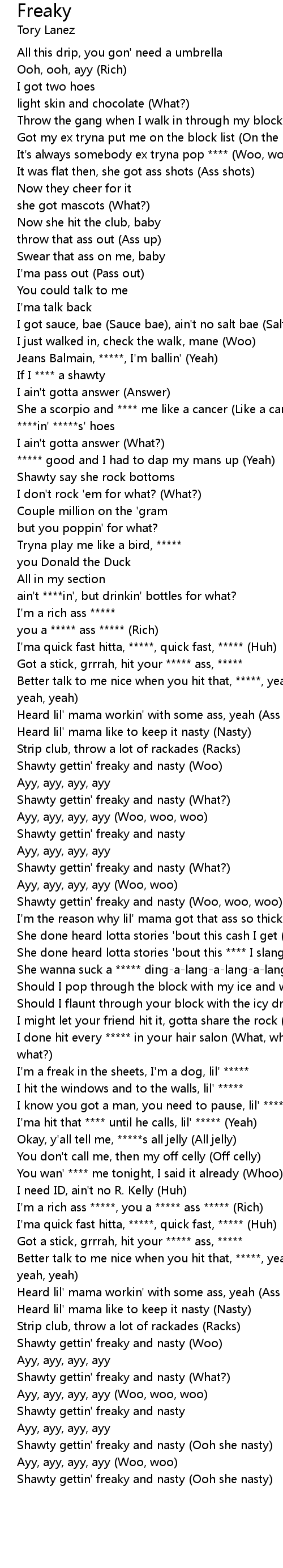 | [00:56.14] | you a ***** ass ***** (Rich) |