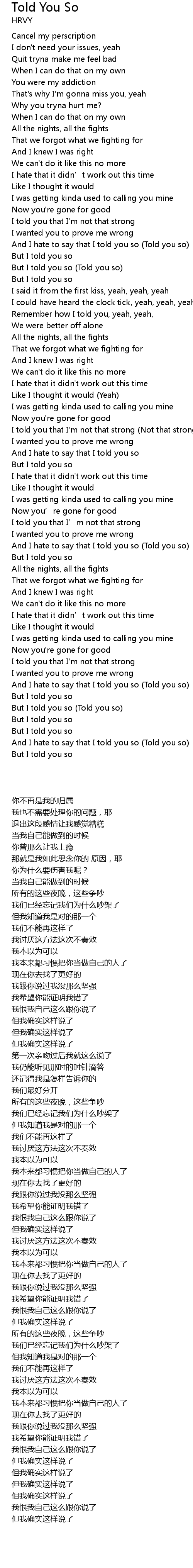 | [02:47.70] | And I hate to say that I told you so (Told you so) |
