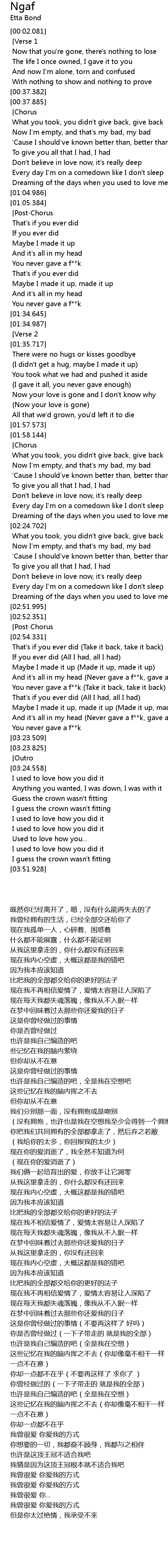 | [02:52.889] [Post-Chorus] |