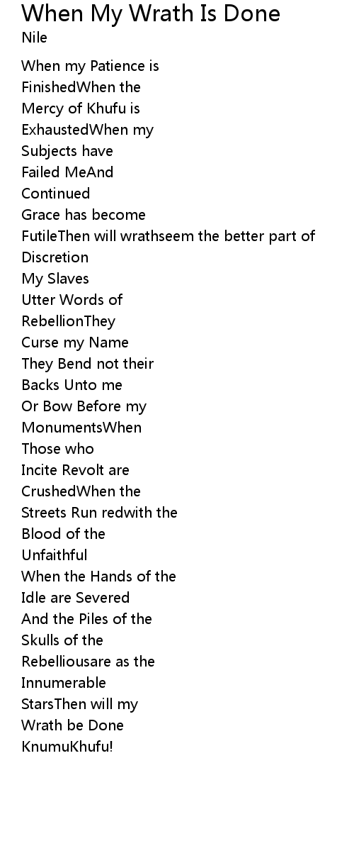 | Song | When My Wrath Is Done |