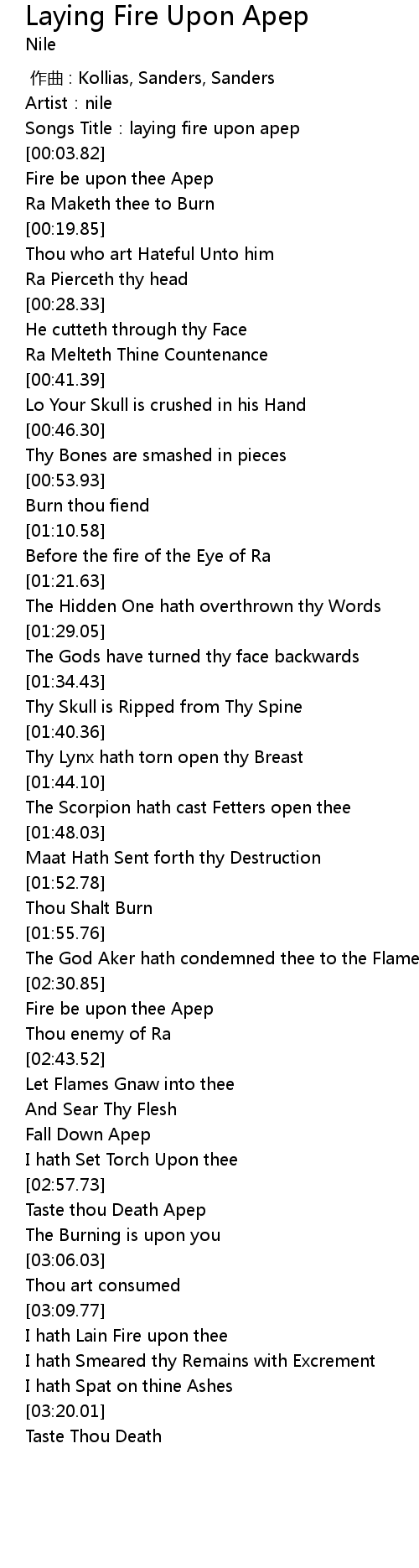 | [00:02.19] | Songs Title:laying fire upon apep |