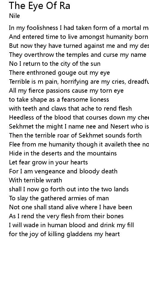 Sekhmet the might I name nee and Nesert who is a burning flame |