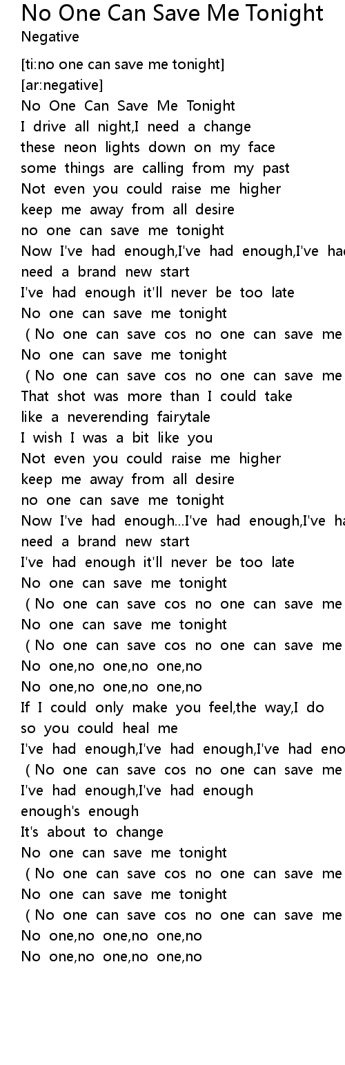 | ti: no one can save me tonight | |
