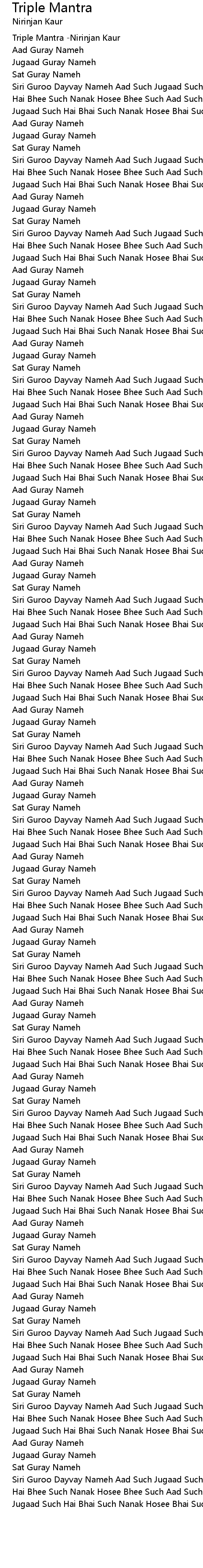 Triple Mantra -Nirinjan Kaur |