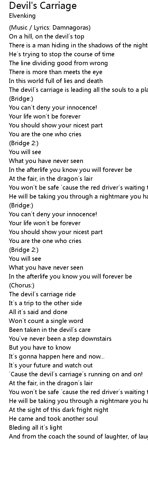 | ´Cause the devil´s carriage´s running on and on! | |
