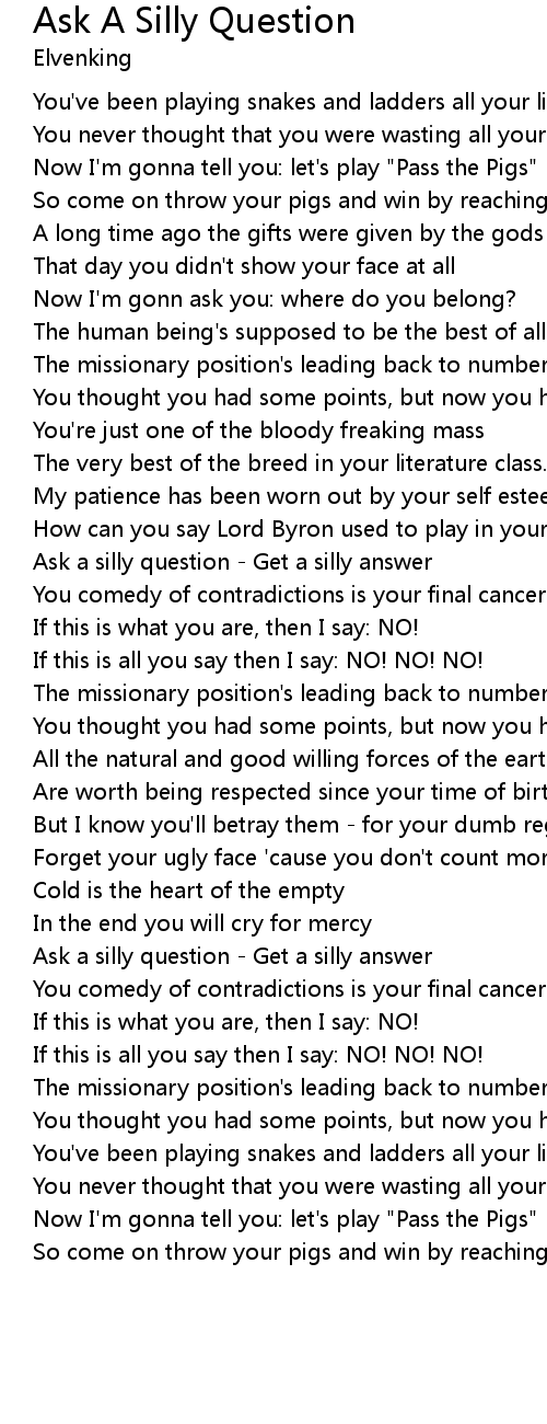 Ask a silly question - Get a silly answer |