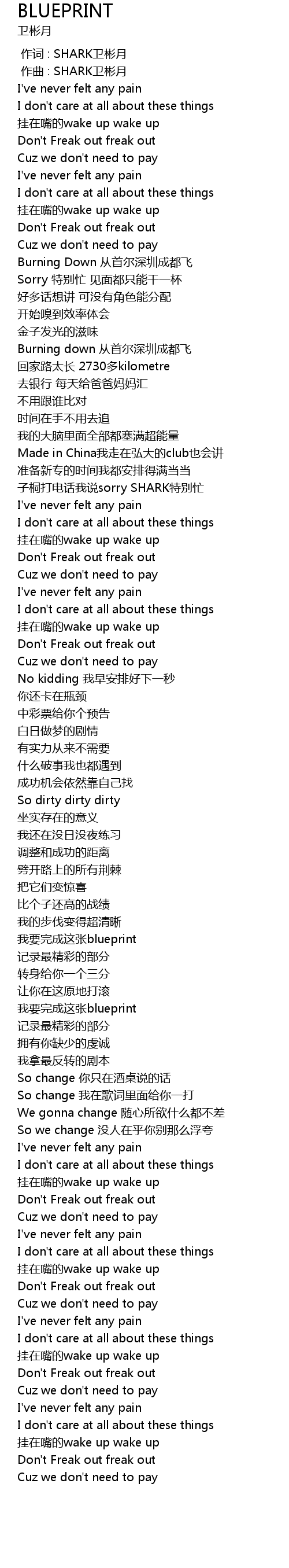 | [02:04.50] | wo yao wan cheng zhe zhang blueprint |