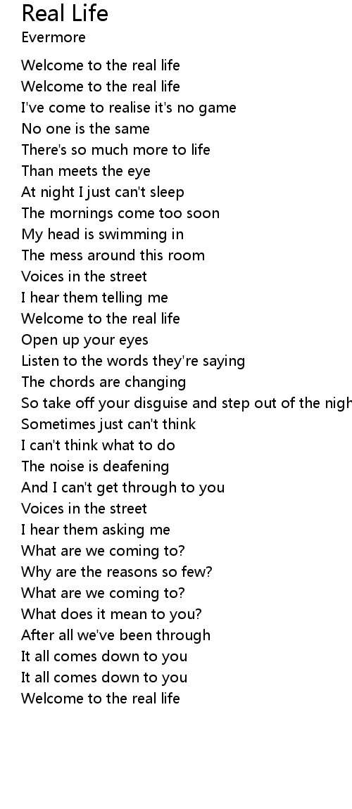 | Welcome to the real life | |