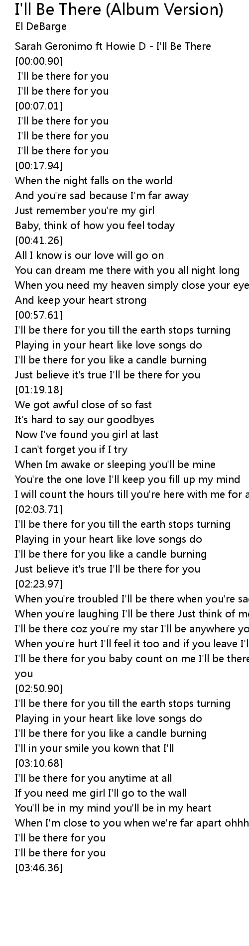 I'll be there for you baby count on me I'll be there for you there for you |