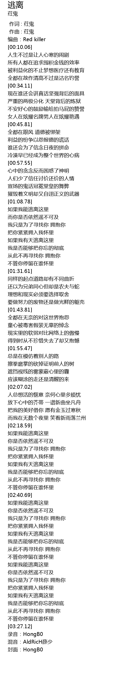 | [00:01.000] | zuò qǔ : hóng guǐ |