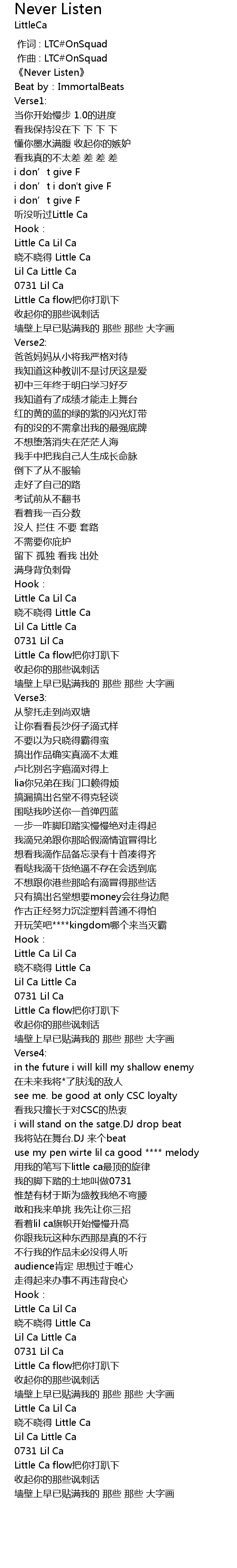 | [02:51.525] | 用我的笔写下little ca最顶的旋律 |