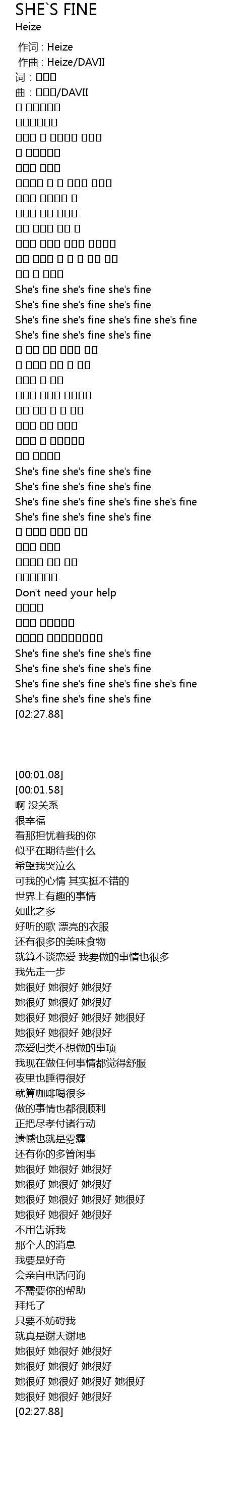 | [00:59.27] | She' s fine she' s fine she' s fine |