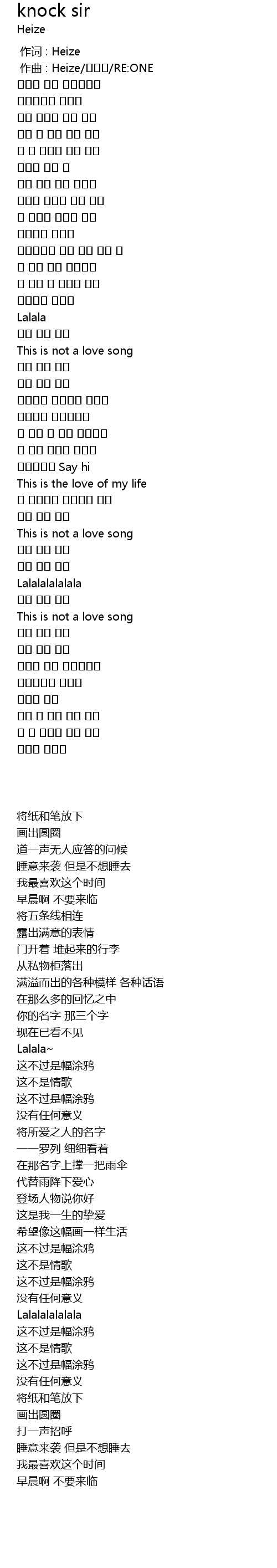 | [00:00.000] | 作词 : Heize |