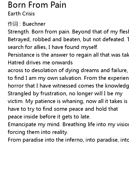 | Strength. Born from pain. Beyond that of my flesh. | |