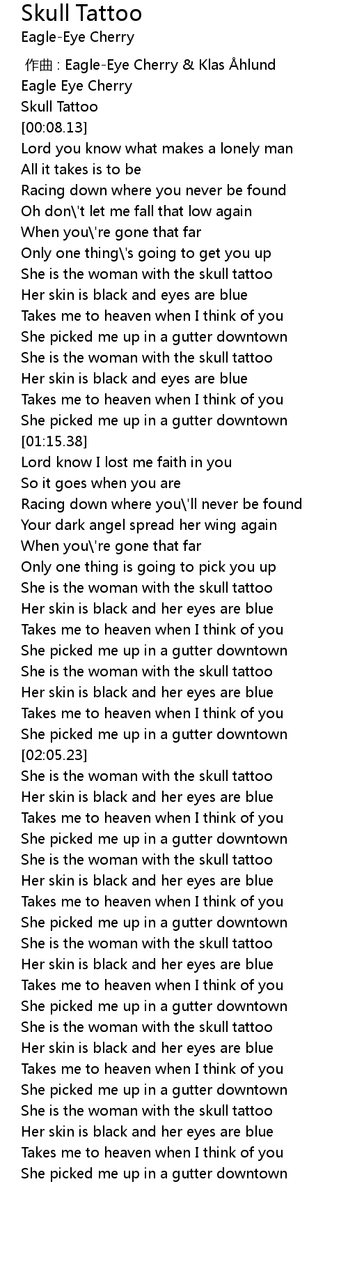 | [03:05.48] | She is the woman with the skull tattoo |