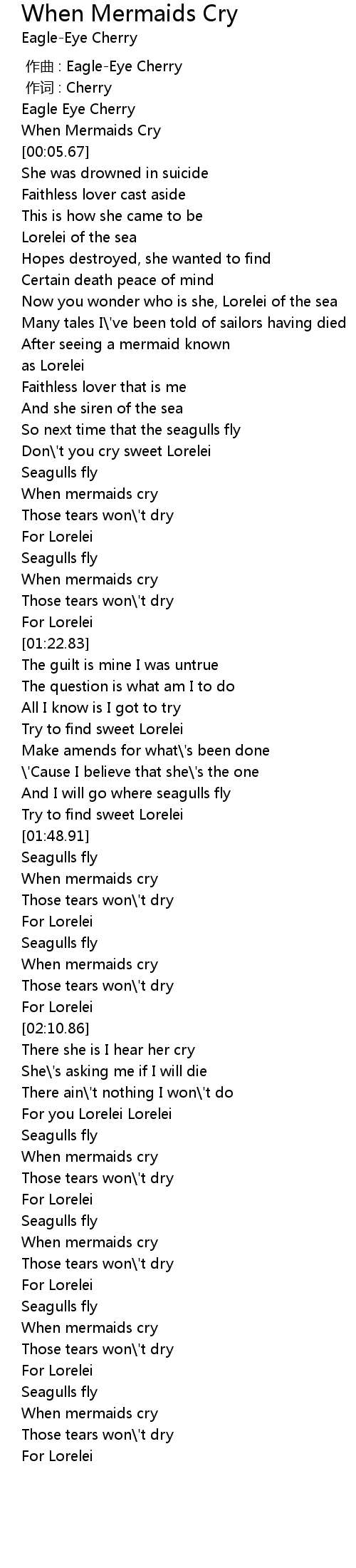 | [00:57.21] | Don' t you cry sweet Lorelei |