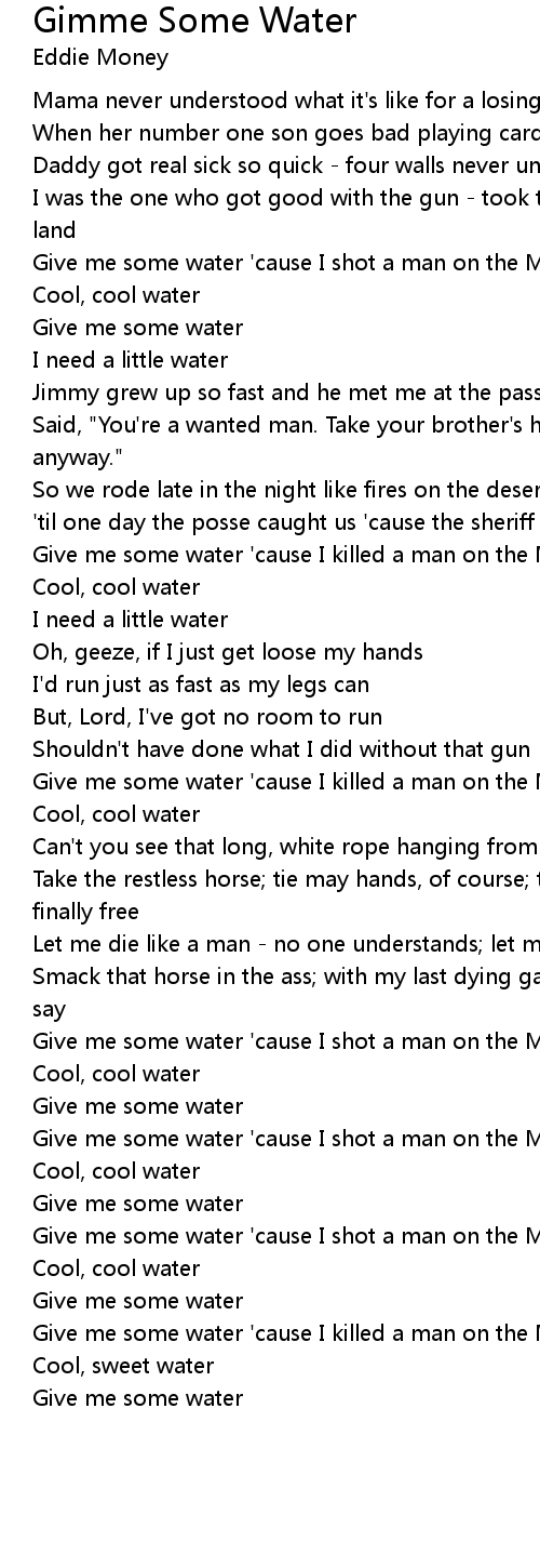 Give me some water 'cause I shot a man on the Mexican border |