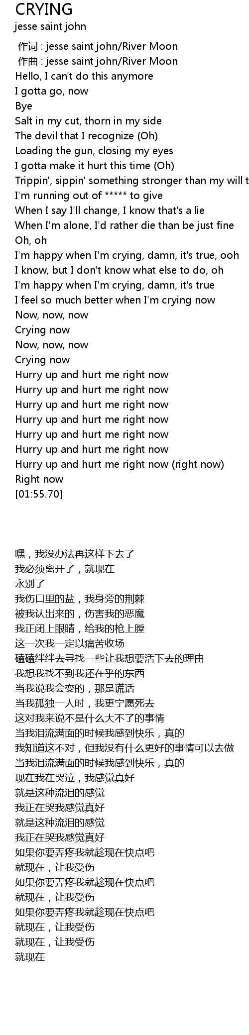 | [00:59.77] | I feel so much better when I' m crying now |